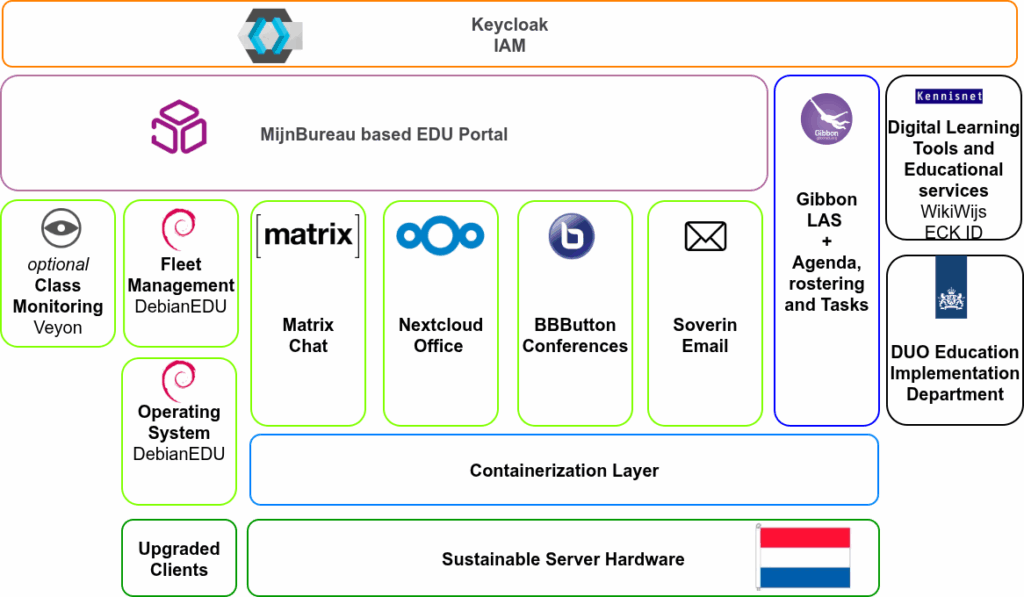 In de talk Digital sovereignty and the FOSS-stack at school zette Geert-Jan opnieuw helder uiteen waarom het zo belangrijk is dat onze kinderen digitaal vaardig worden in een veilige digitale schoolomgeving. De risico’s en nadelen van huidige afhankelijkheid van de grote buitenlandse techspelers (profilering en targetingmogelijkheden, gedragsvoorspelling en -beïnvloeding, vendor lock-in op verschillende niveaus en privatisering van collectieve inspanning) werden helder uit de doeken gedaan. De oplossing mocht natuurlijk ook niet ontbreken: een op publieke waarden gebaseerde stack voor alle IT-domeinen op school. Ook de successen tot nu toe zijn gedeeld: zo zijn er verschillende pilotscholen die de transitie met ons willen aangaan en zijn Chromebooks al bevrijd van Google – en dus bruikbaar tot ze kapot gaan, in plaats van tot Google ze niet meer wil ondersteunen. Bovendien werd weer eens duidelijk dat er al verschillende mogelijkheden zijn om over te stappen op ethische alternatieven! Zie bijvoorbeeld hieronder. Of zie MijnBureau, ontwikkeld in samenwerking met de Nederlandse overheid naar het voorbeeld van Duitse en Franse initiatieven.